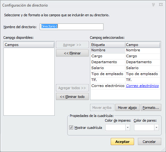 creará un directorio que no incluya información sobre el salario y el tipo de