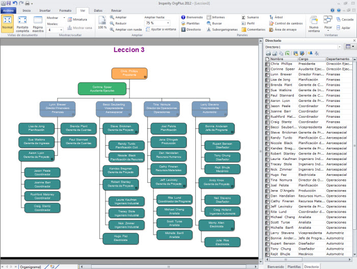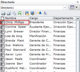 muestra un directorio que contiene a Chris Phillips y a todos sus subordinados.