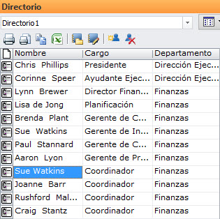 localice la fila del directorio que contiene a Sue Watkins. Pulse sobre su