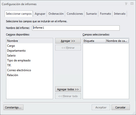 13 Haga clic sobre el vínculo Pulse aquí para crear un informe para mostrar el cuadro de diálogo Configuración de informes.
