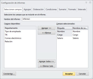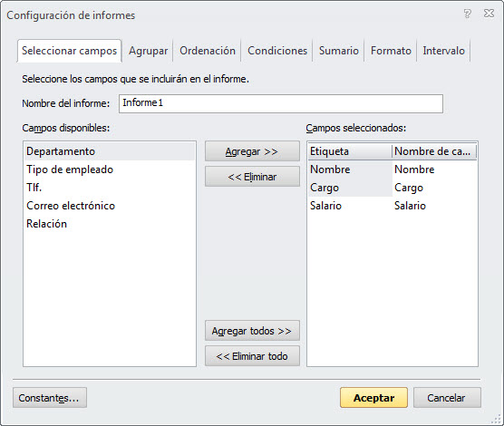 17 Seleccione Salario y pulse sobre el botón Agregar.