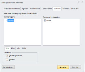 18 Seleccione la pestaña Sumario y marque la casilla Salario. Esto hará que se muestre la suma total de los salarios en su informe.