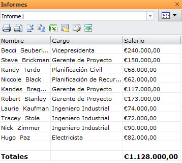 Los informes pueden ser exportados a formato de hoja de cálculo.