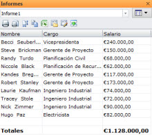 20 Seleccione la caja que contiene a Becci Seuberling. El informe salarial del equipo de Becci aparecerá en el panel Informes. Haga clic en otras cajas para ver cómo se crean de forma automática sus informes correspondientes.