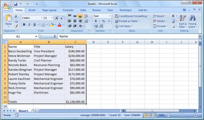 OrgPlus creará una hoja de cálculo de Excel con los datos del informe.