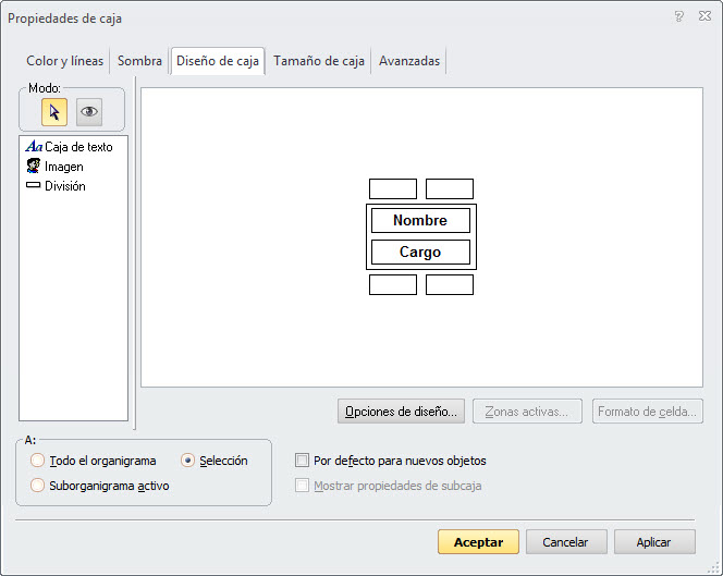 cuadro de diálogo Propiedades de caja.