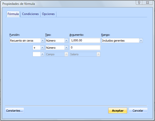 opciones de fórmula: