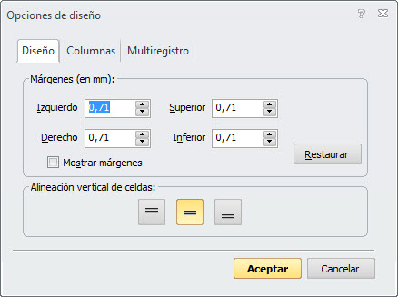 4 Haga clic en el botón Opciones de diseño... para que aparezca el cuadro de diálogo Opciones de diseño.