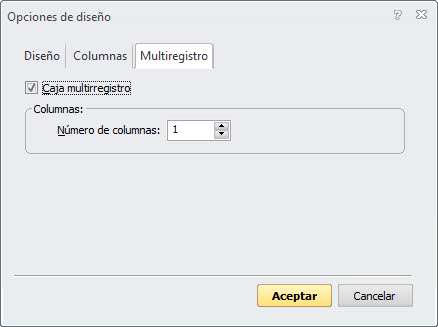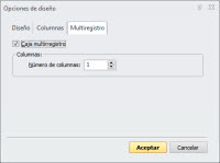 6 Haga clic en la opción Caja Multirregistros e introduzca o seleccione el número de columnas que desea que tenga la caja.
