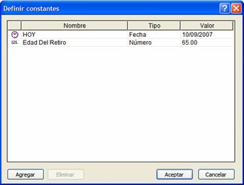 El valor de la constante Edad de jubilación podría ser posteriormente modificado como parte de un ejercicio de análisis de escenarios.