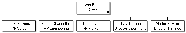 A pesar de que Joan Levinson tiene una gerente válida (Mary Wilson), no puede ser incluida en el organigrama ya que su gerente, Mary, no tiene forma de ser incluida. Si a Mary se le asignara un gerente que estuviera en el organigrama, Joan resultaría a su vez automáticamente incluida.