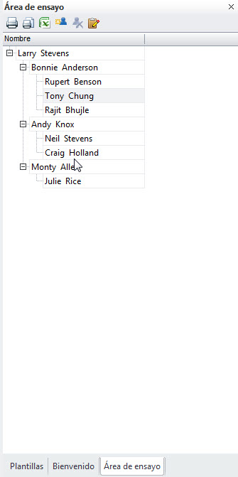 persona seleccionada del panel Área de ensayo. |