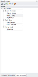 panel de árbol hasta el panel Área de ensayo, y al revés. Puede agregar,