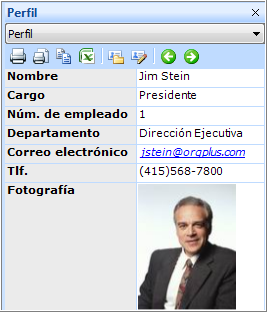 Para editar datos del organigrama mediante el panel Perfil, haga doble clic en una celda del perfil e introduzca sus cambios. Pulse <Tab> o <Intro> para confirmar cada cambio y pasar a la celda siguiente.