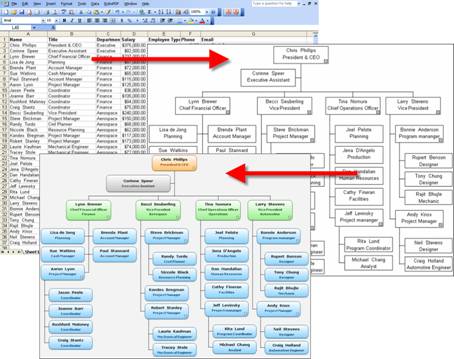 You can import data from a database, spreadsheet, or start from scratch using OrgPlus' intelligent drawing tools. OrgPlus completely automates chart creation. |