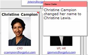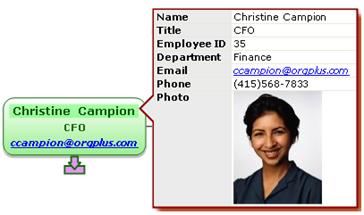 OrgPlus enables you to define any area within a box as a hotspot. When a user moves the cursor over a hotspot a profile is dynamically displayed.