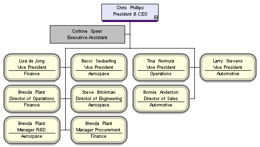 You can create boxes that contain more than one record and more than one column. For example, the entire sales team for an organization can be represented in a single box, as follows: