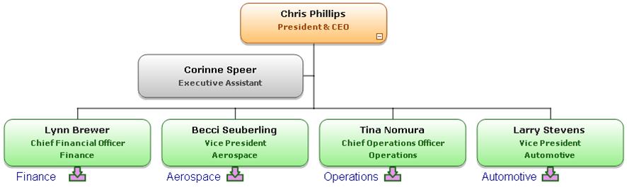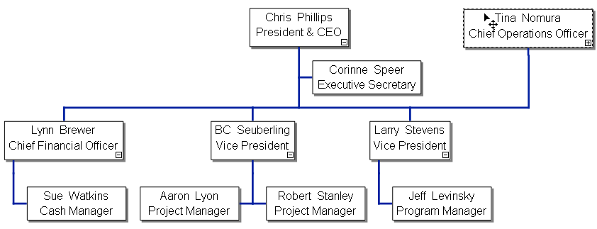 OrgPlus supplies a variety of design, box, and branch templates that can be used to quickly create professional looking charts.