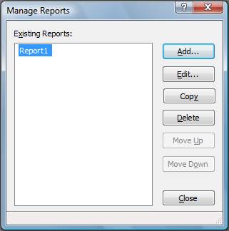 Note: You can reorder how reports are displayed in the Manage Reports dialog box using the Move Up and Move Down buttons.
