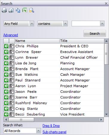 The Search panel allows you to search charts for all records that meet a set of criteria. This topic describes how to open the Search panel and what features are available.