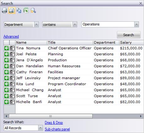 2 Click the Search button. The records meeting the search results appear in the panel.