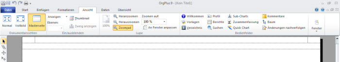 · Klicken Sie bei geöffnetem Organigramm auf den Tab Ansicht und wählen Sie Masterseite im Bereich für Dokumentansichten aus.