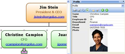 Mit Profilen können Sie Informationen zu jedem Feld im Diagramm anzeigen und bearbeiten, z. B. Fotos oder Telefonnummern.