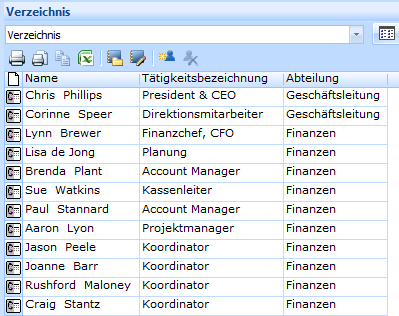 Das Verzeichnis-Bedienfeld verfügt über folgende Elemente: