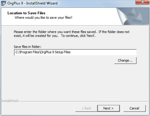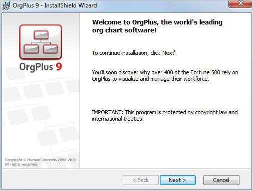 In order to use OrgPlus you must install it on your hard disk. You cannot run OrgPlus directly from your original OrgPlus CD. You can copy the OrgPlus setup file to a network drive, if you intend to install on multiple computers.