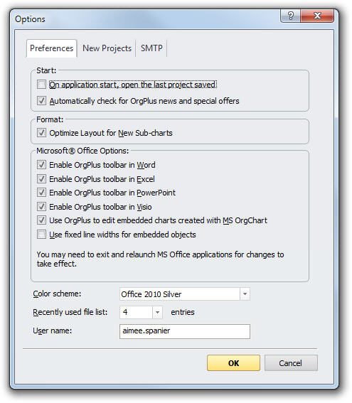 · Microsoft Office Options: Lets you add the OrgPlus toolbar to Microsoft Office applications to create organizational charts in those applications.