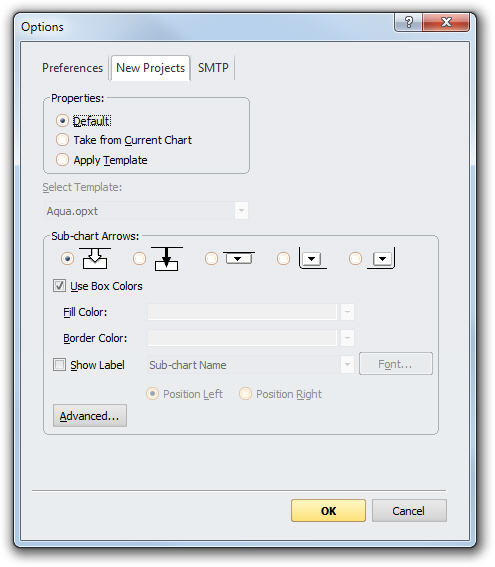 · Show Label: To include a label with your sub-chart arrows click this checkbox and select the label from the drop-down list. If you add a label, select either Position Left or Position Right to specify the label location relative to the arrow. Click the Font button to set the Font Properties for the label.