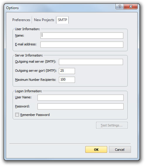 · Click the Test Settings button. The system will send a test e-mail to the address you entered in User Information.